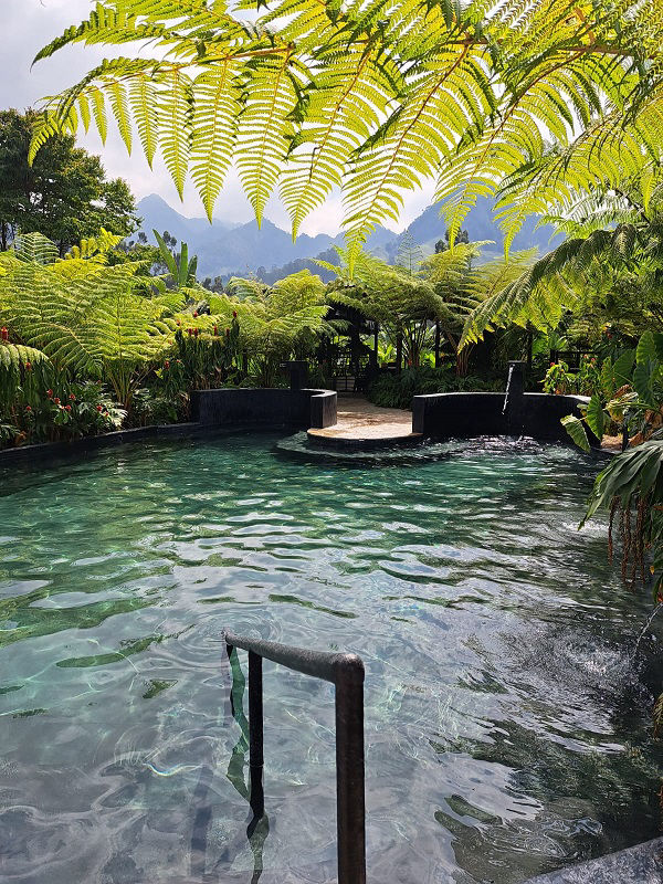 Descanso y bienestar buscan quienes llegan a Coconuco a las termales Agua Tibia, que tienen una temperatura de afloramiento de 57 ºC pero de 35 ºC en las piscinas.